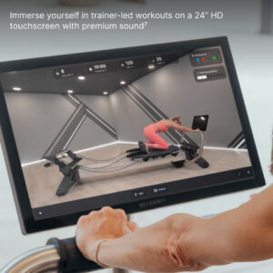 Màn hình cảm ứng 24 inch có thể điều chỉnh mang đến trải nghiệm tập luyện sống động ngay tại nhà.