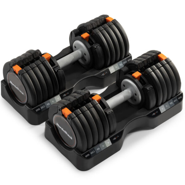 Tạ điều chỉnh 25kg NordicTrack cung cấp cho người dùng 15 mức trọng lượng trong một sản phẩm duy nhất, đồng thời chiếm rất ít không gian trong nhà. Tạ được bán theo cặp và đi kèm với khay đựng riêng biệt có nhãn rõ ràng để bạn dễ dàng chọn trọng lượng mong muốn. Tạ cũng tích hợp các bài tập tăng cường sức mạnh chuyên dụng trên ứng dụng iFIT (đăng ký riêng) để bạn có thể tập theo các bài tập hướng dẫn của các huấn luyện viên iFIT nổi tiếng thế giới.