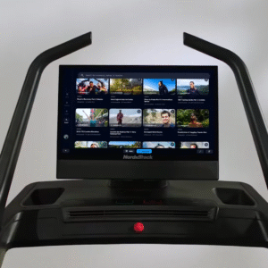 - Pivoting 24″ (61.0 cm) touchscreen for off-equipment workouts